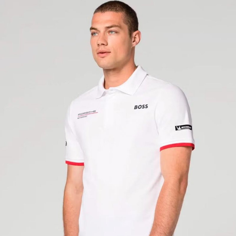 Boss Porsche Edition Premium Polo Neck White Tshirt