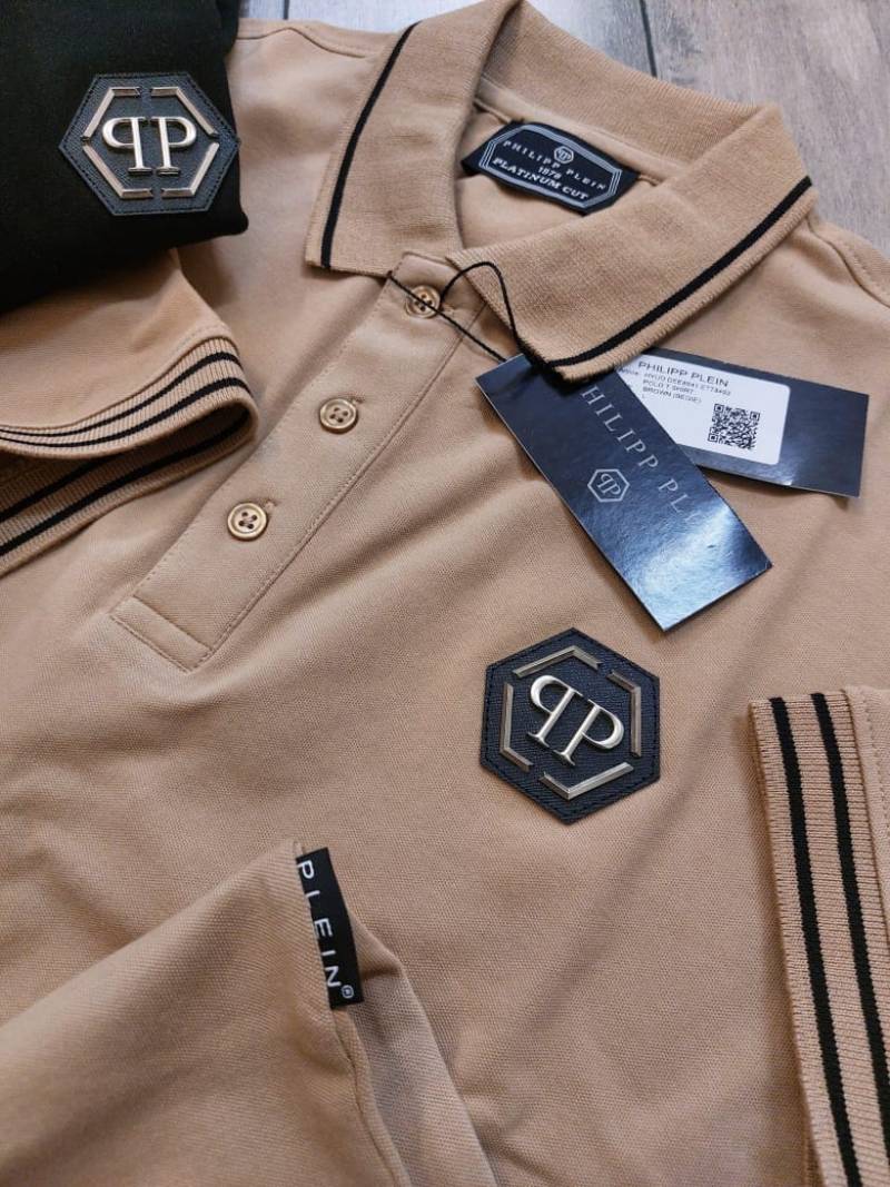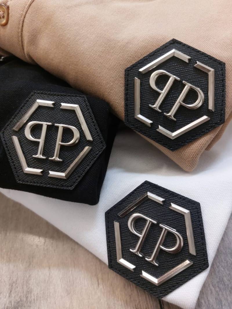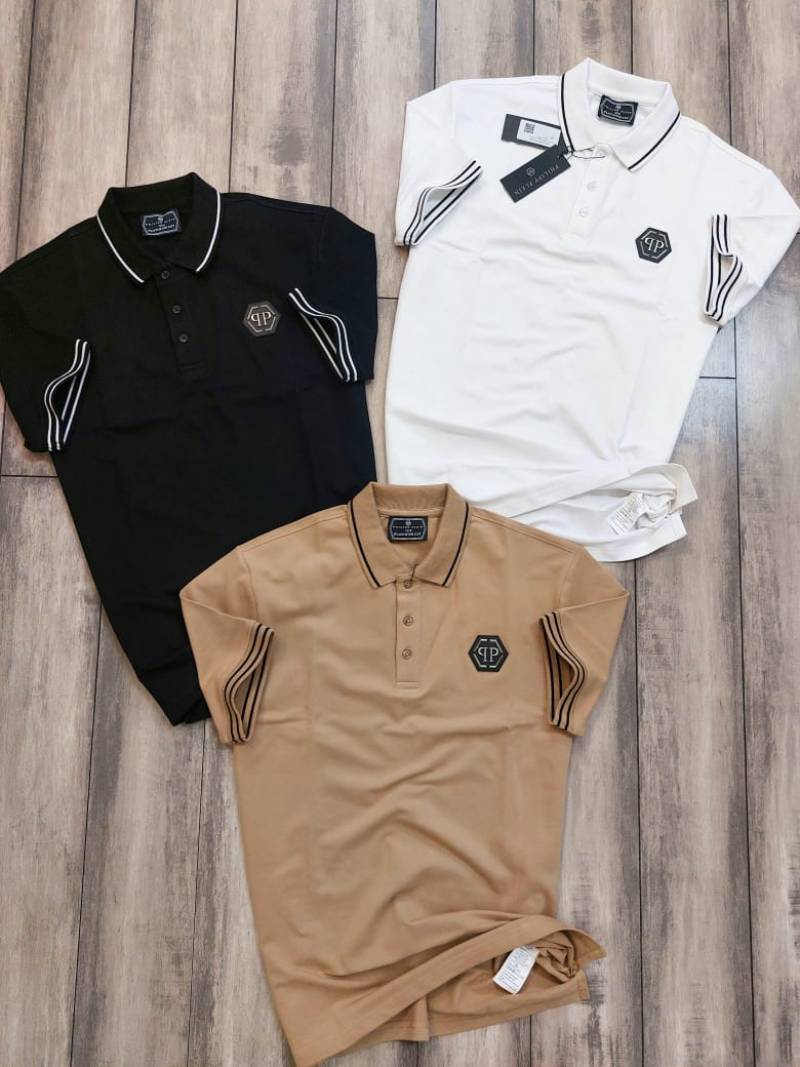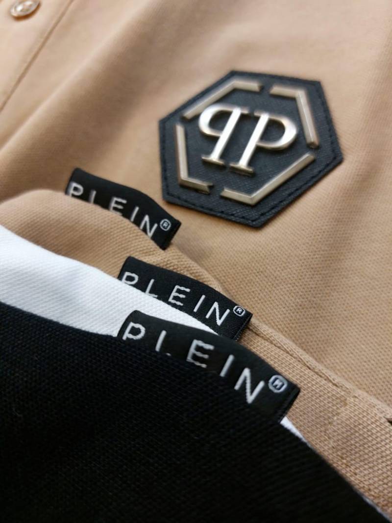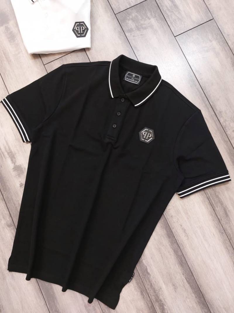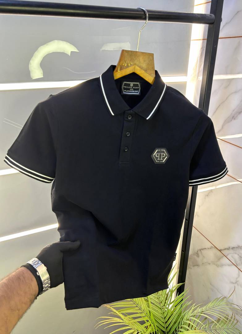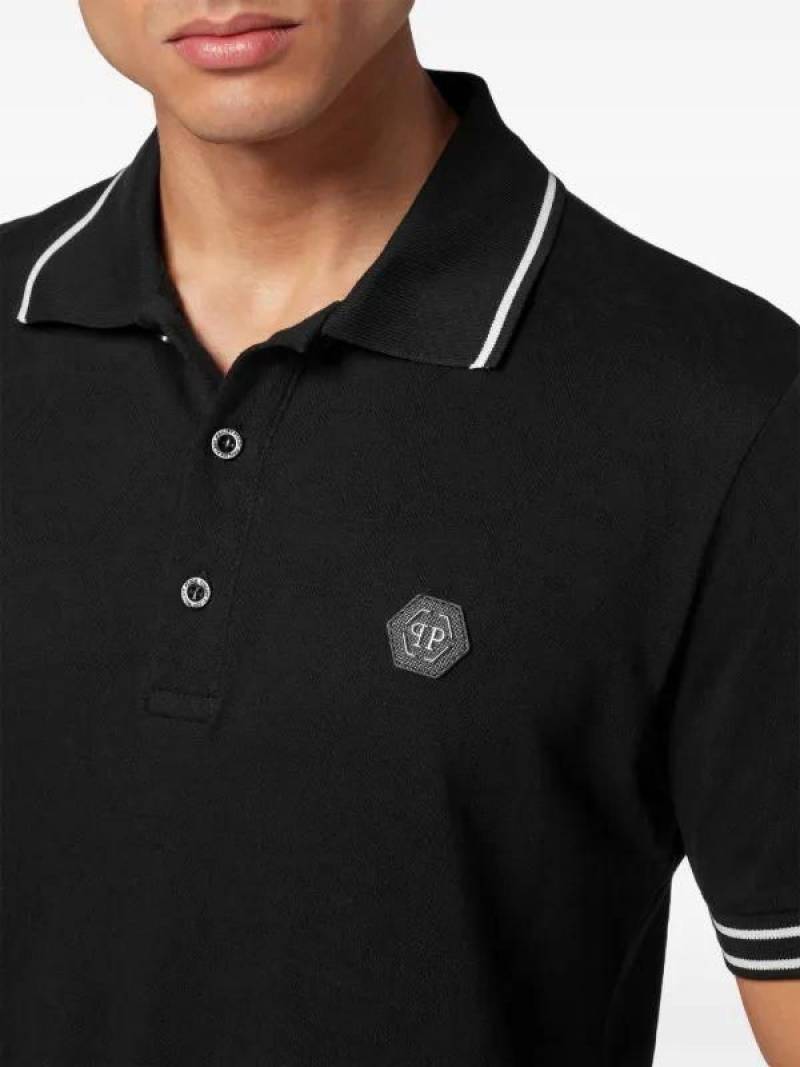 Philip Plein Premium Polo Metal Logo Black Collar Neck T-shirt F2671-BL